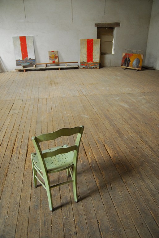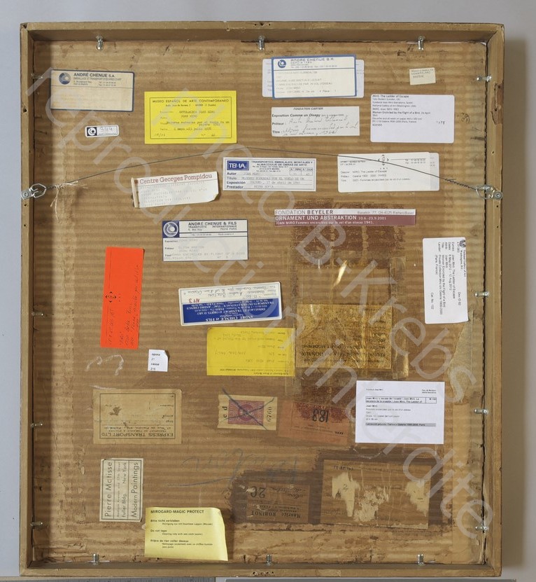 l’atelier de Xavier Krebs et ci-dessous le dos d’une oeuvre de Joan Miro